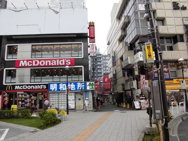 マクドナルドとマツモトキヨシの間の道を直進してください。