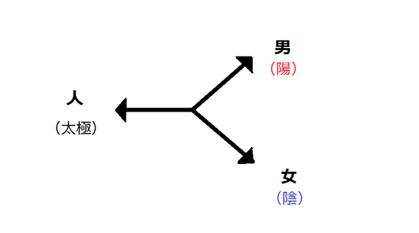 上の図は、太極が陰陽に分かれるという意味ではなく、