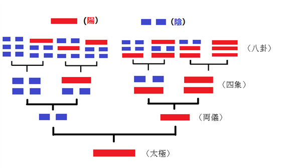 「易に太極有り、是(こ)れ両儀を生ず、両儀四象(ししょう)を生じ、四象八卦(はっか)を生ず」とあるのに始まる。