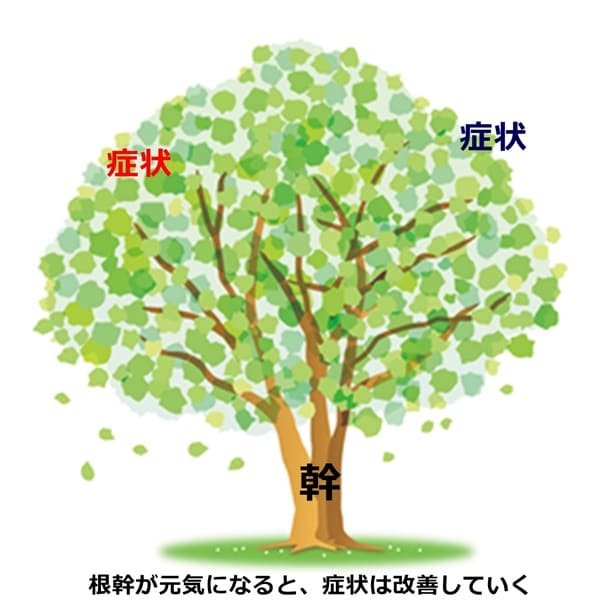 悪い枝葉だけを取り除いても、根幹の部分が弱ったままだとすぐに症状が再発してきたり、又は、形を変えて別の症状として現れるかもしれません。